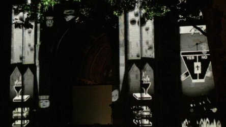 Through the techniques and methods that were offered to the artists, they were able to create a complete 3D spatial experience using the geometry of the cathedral.