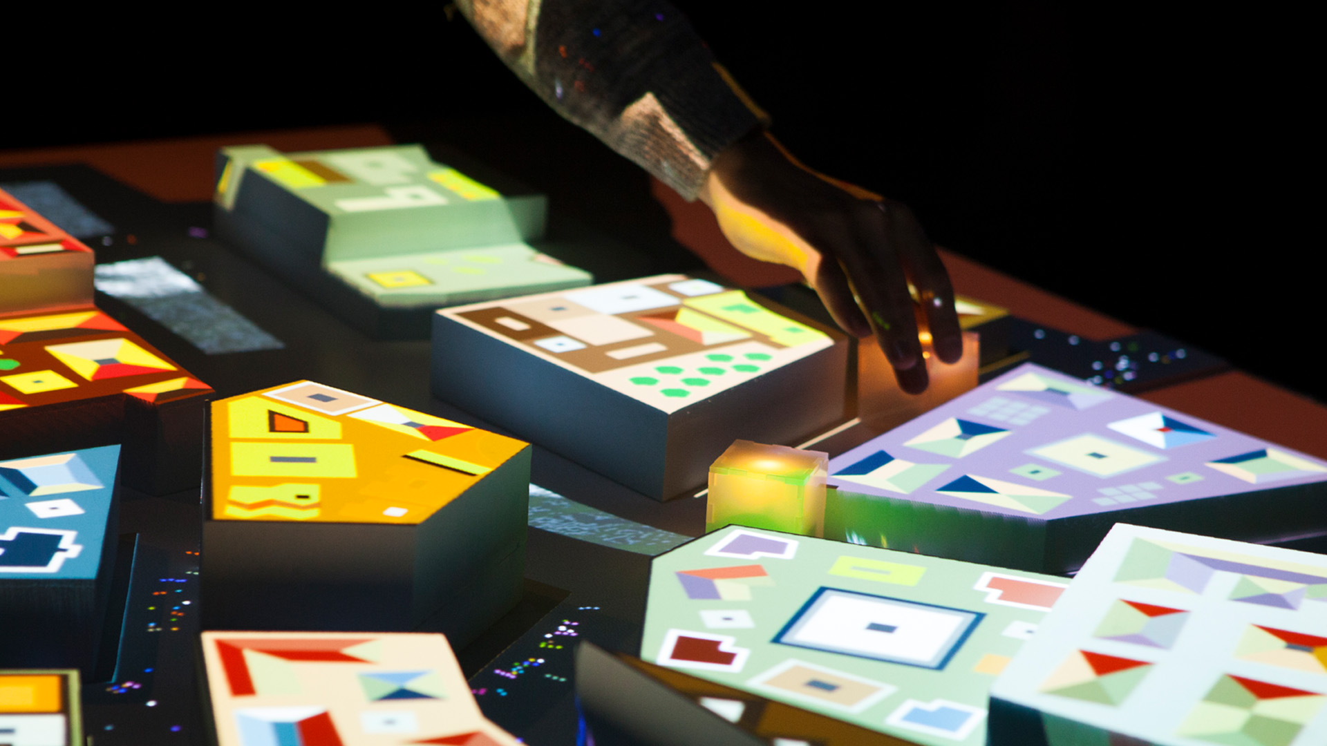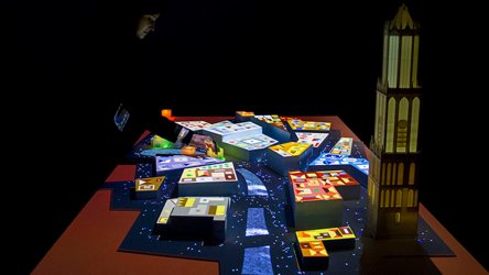 The installation consist of a live tracked projection on a physical 3D model of the city of Utrecht. It enables the possibility for the audience to connect and interact with the crowd simulation software. This opens up new possibilities for research in large crowd behaviour in challenging urban environments.
